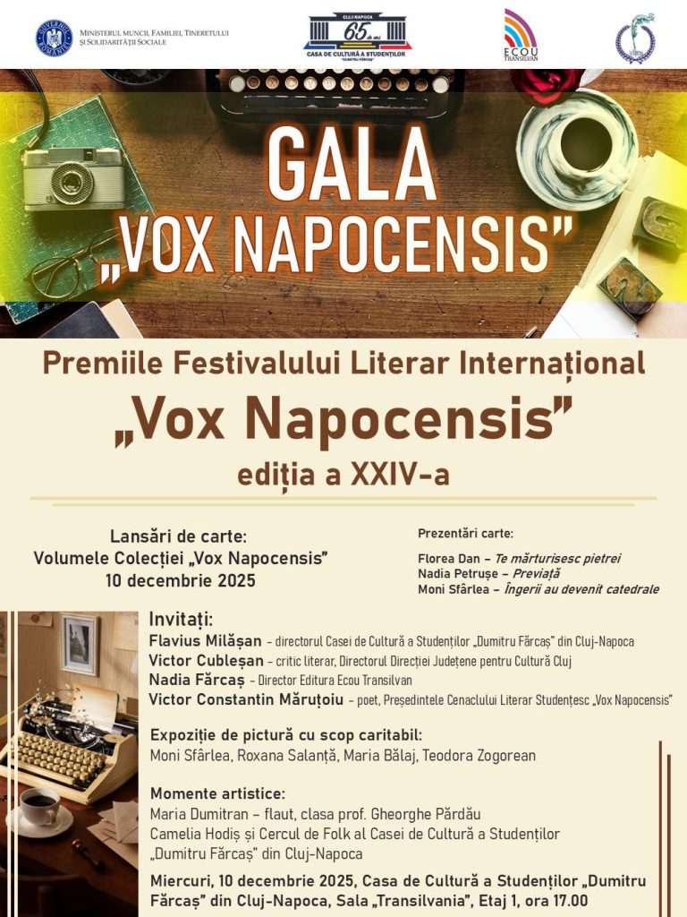 Vă așteptăm cu drag la Gala VOX NAPOCENSIS, miercuri 10 decembrie 2025, ora 17.00