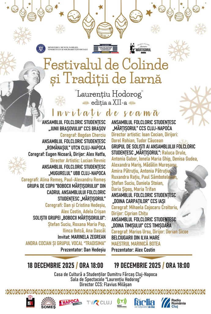 Festivalul de Colinde și Tradiții de Iarnă „Laurențiu Hodorog” aduce pe scena Casei de Cultură a Studenților „Dumitru Fărcaș” dansatori și interpreți din mai multe orașe ale țării – Brașov, Iași, Timișoara, Cluj-Napoca, care ne vor încânta cu obiceiuri tradiționale din preajma Crăciunului și a Anului Nou.