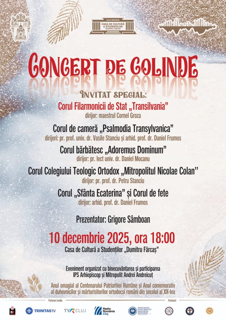 Vă invităm la un concert de colinde, miercuri, 10 decembrie 2025, de la ora 18.00, în care ansamblurile corale invitate vor reda frumusețea și emoția colindelor autentice!